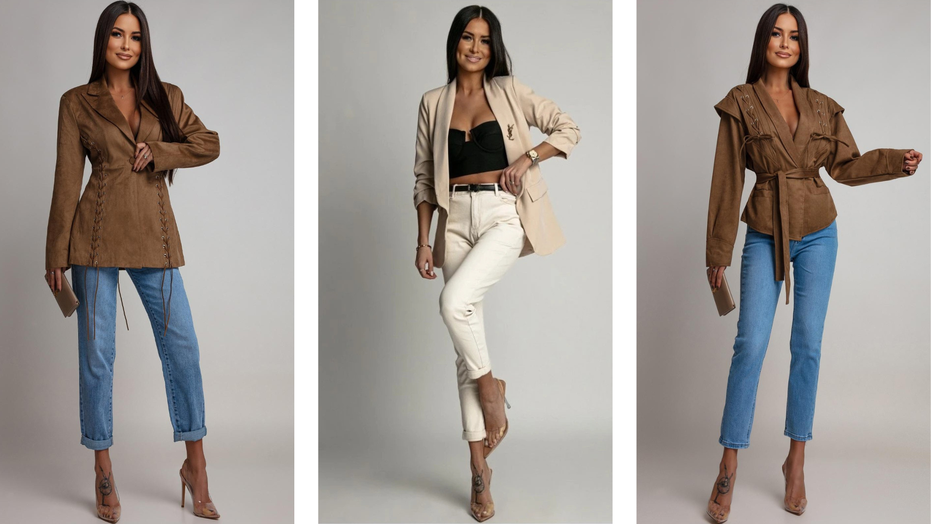 Aj v profesionálnom šatníku dnešnej ženy môže nájsť miesto kúsok, ktorý spája komfort a štýl – napríklad dobre padnúce rifle. V kombinácii s elegantným semišovým kabátikom alebo sakom vytvára outfit, ktorý pôsobí sofistikovane, no zároveň moderne a uvoľnene. Takéto vrstvenie je ideálne na dni, keď sa chcete cítiť pohodlne, no stále reprezentatívne – či už ide o cestu do kancelárie, neformálne stretnutie alebo pracovný obed. Dôležité je zachovať rovnováhu: rifle by mali byť kvalitné, s čistým strihom a neutrálne farby, aby outfit pôsobil profesionálne. Semišový kabát alebo sako dodáva štruktúru a jemnú eleganciu, čím celý look posúva na úroveň moderného business štýlu. Tento typ kombinácie ukazuje, že aj menej formálne kúsky môžu byť súčasťou profesionálneho šatníka – stačí ich premyslene vrstviť a doplniť doplnkami, ktoré podčiarknu autoritu a osobnosť ženy.