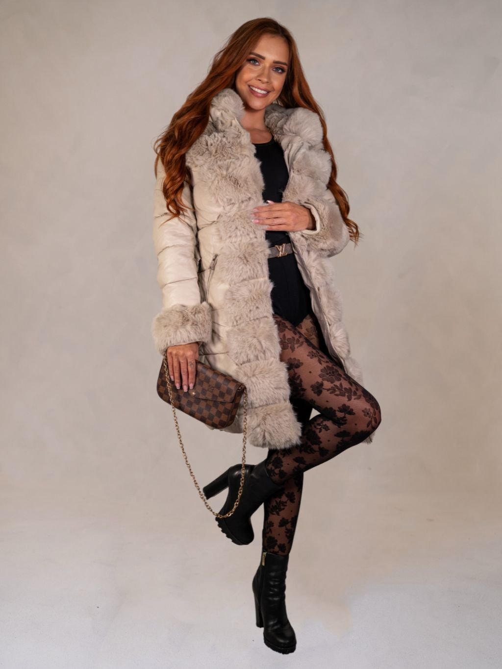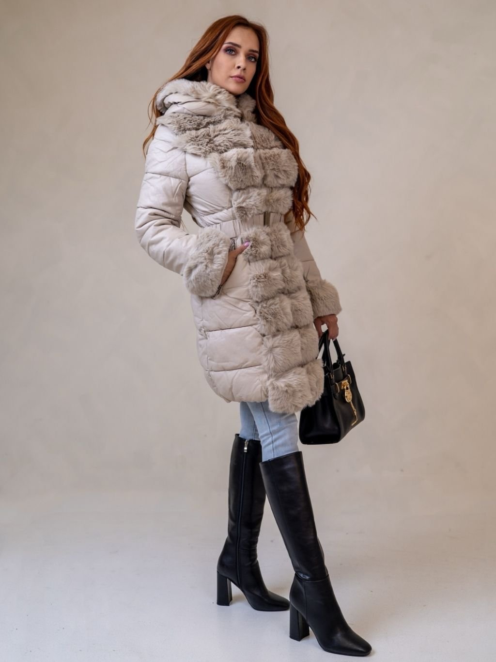 Dámska bunda s kožušinou z novej kolekcie.