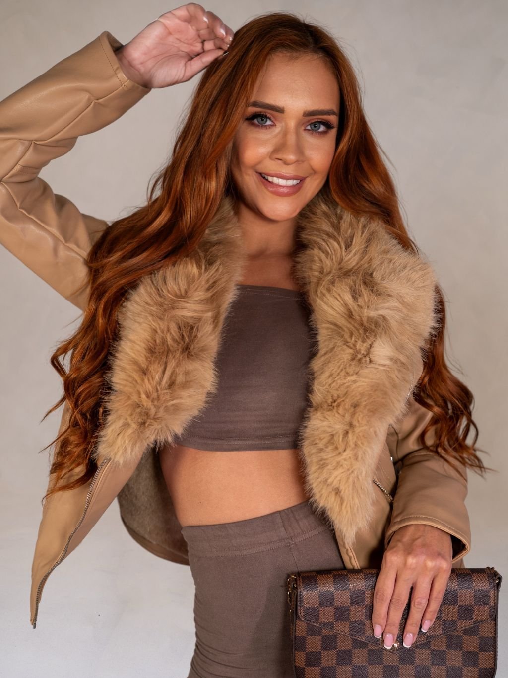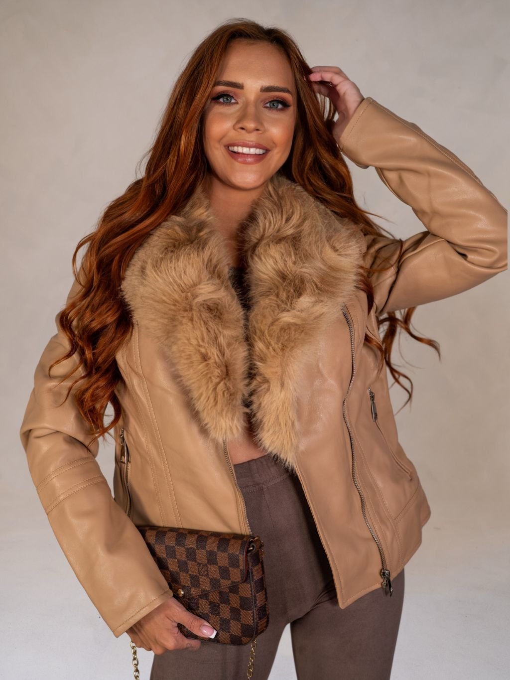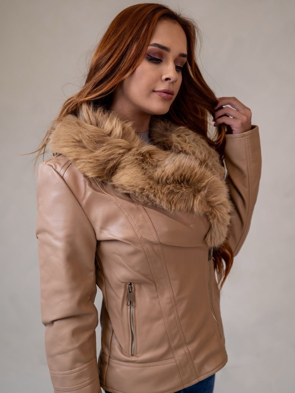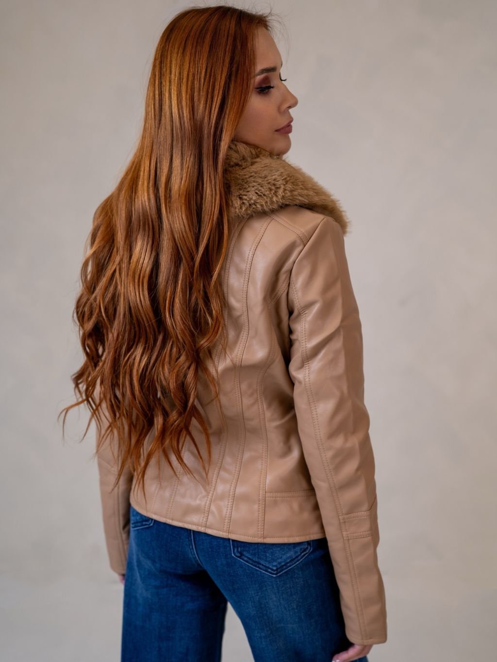Dámska koženková bunda s kožušinou z novej kolekcie.