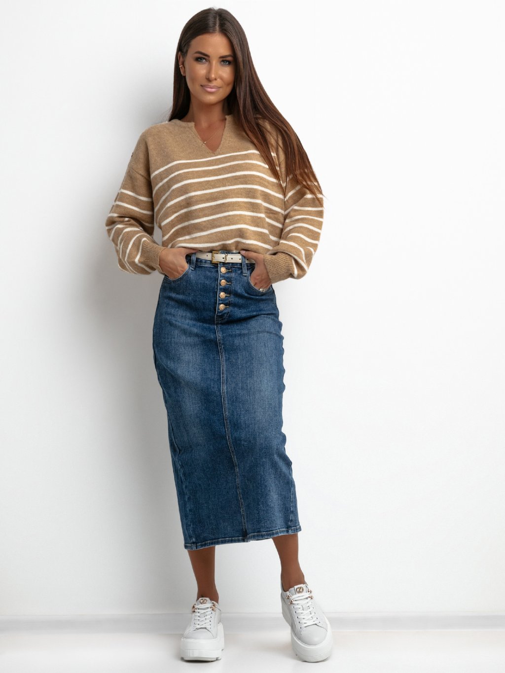 Dámska rifľová sukňa z novej krásnej kolekcie.