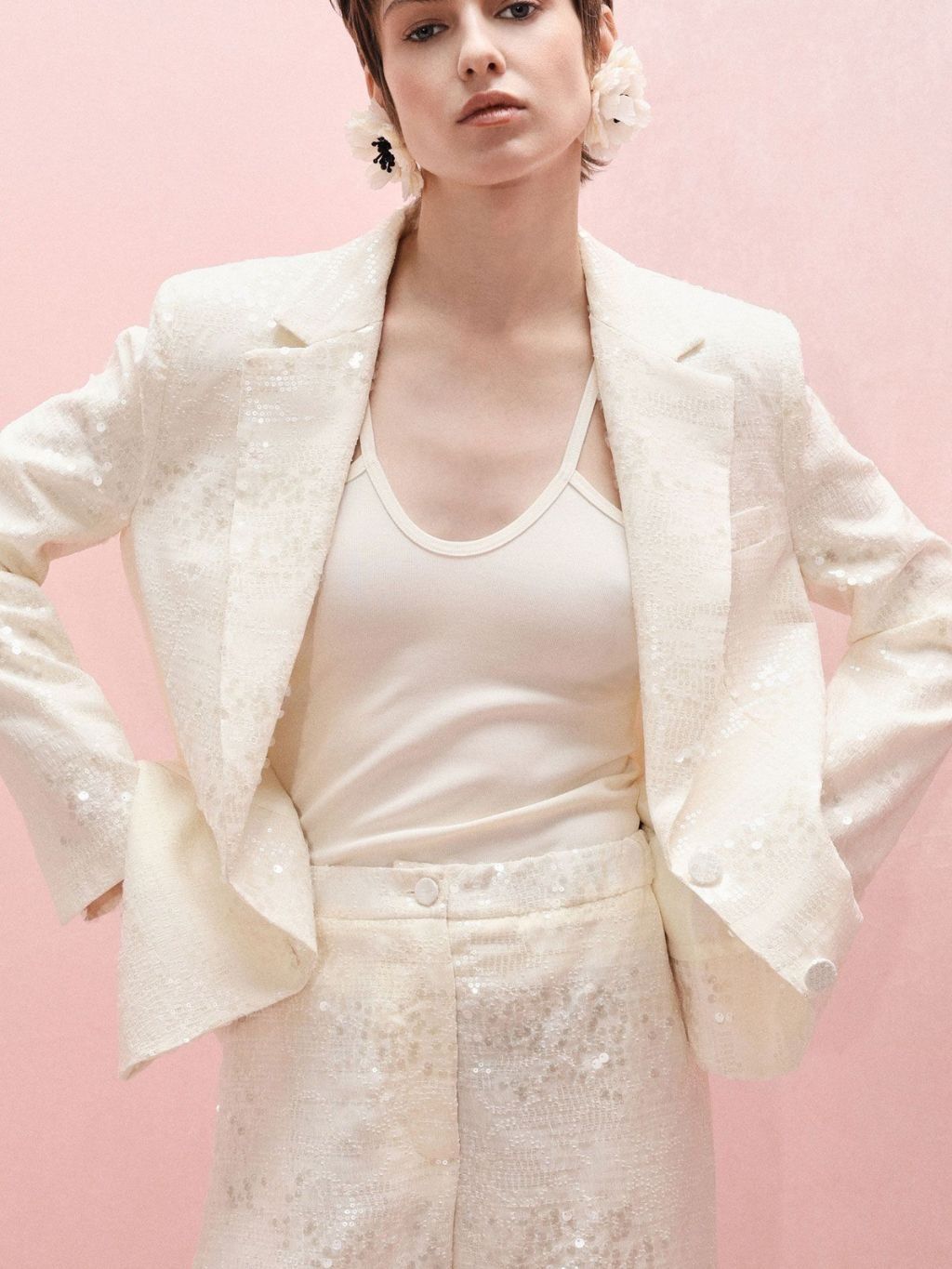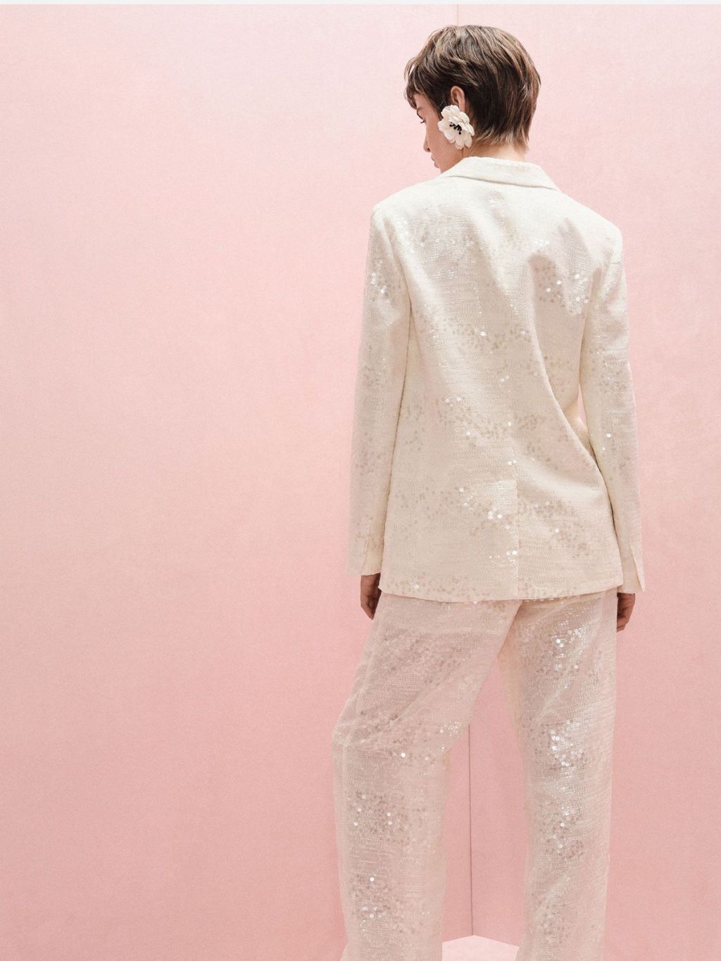 Elegantné dámske sako s flitrami v jemnej marhuľovej farbe dodá každému outfitu ten správny šmrnc. Klasický strih a zapínanie na jeden gombík je ideálne na spoločenské udalosti, ale aj štýlové každodenné nosenie pre ženy, ktoré sa neboja vyniknúť.