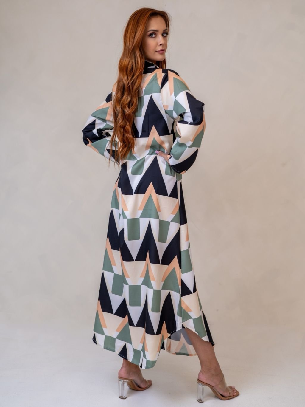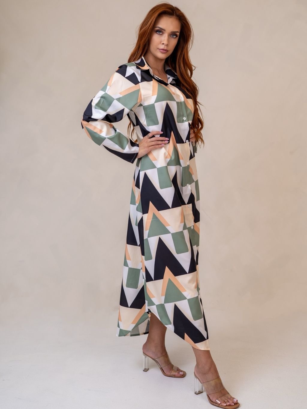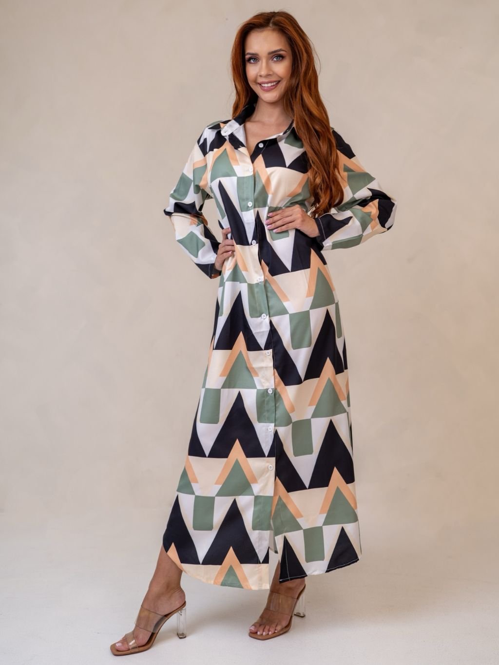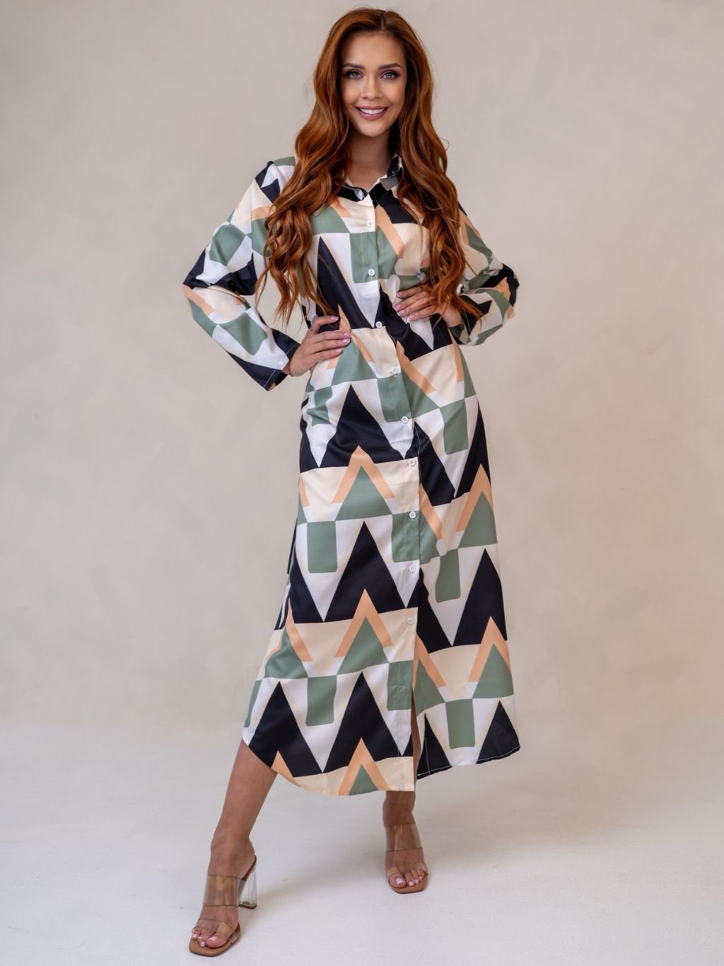 Dámske košeľové šaty so zaujímavým vzorom z novej kolekcie.