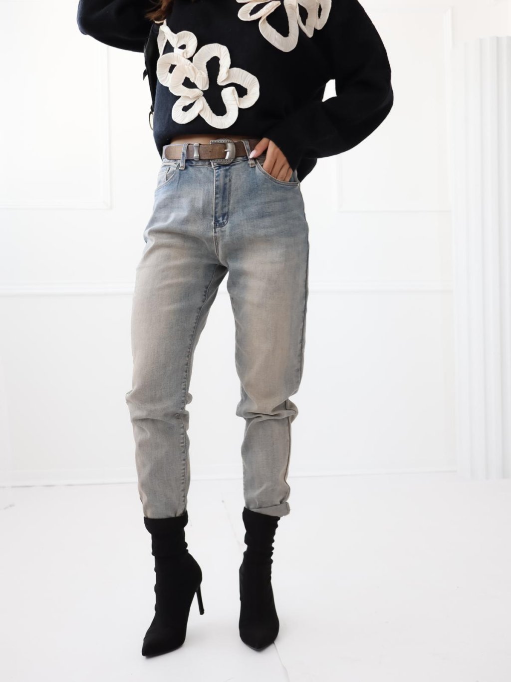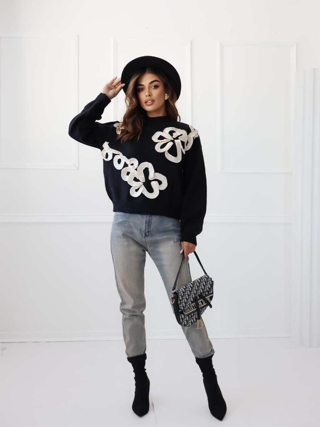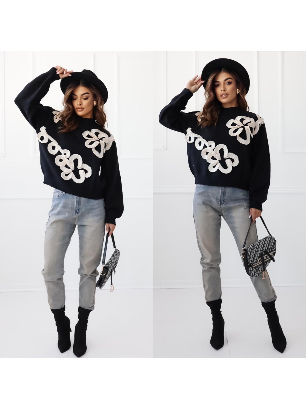 Dámsky sveter z novej kolekcie s kvetinovým vzorom.