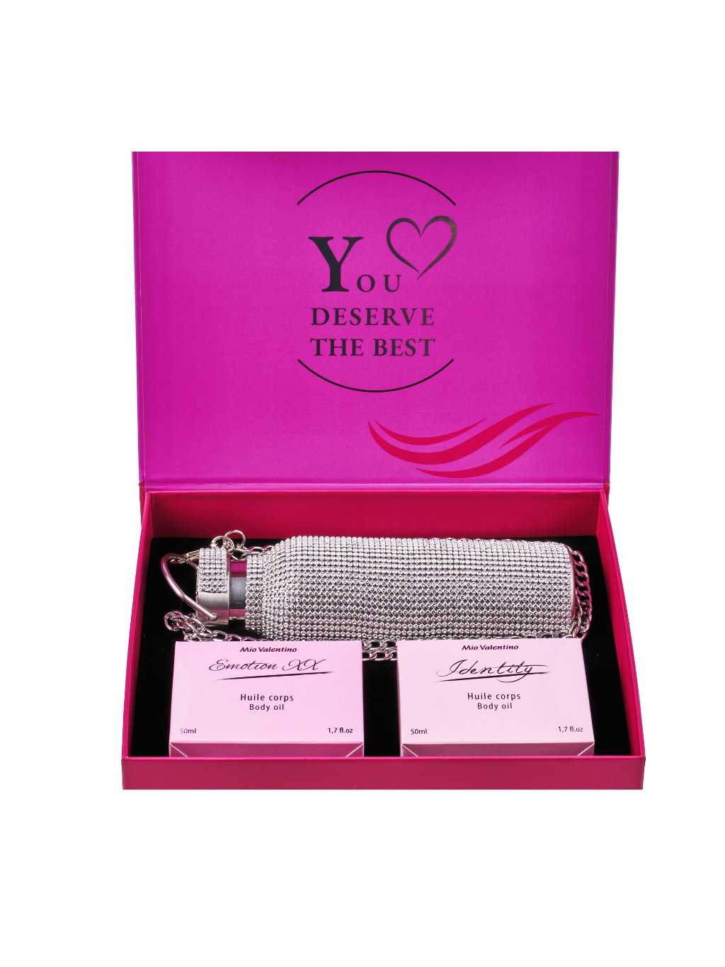 Luxusný telový olej obohacuje pokožku štyrmi delikátnymi olejmi: arganovým, makadamovým, mandľovým a marhuľovým. Nielen že intenzívne spevňuje, hydratuje a vyživuje, ale aj jemne parfumuje pokožku elegantnou sviežou vôňou Identity.
