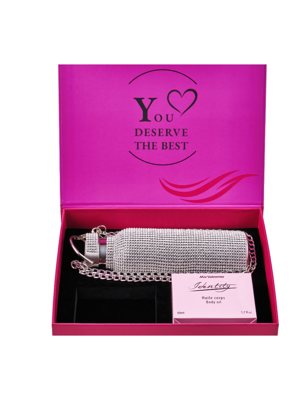Luxusný telový olej obohacuje pokožku štyrmi delikátnymi olejmi: arganovým, makadamovým, mandľovým a marhuľovým. Nielen že intenzívne spevňuje, hydratuje a vyživuje, ale aj jemne parfumuje pokožku elegantnou sviežou vôňou Identity.