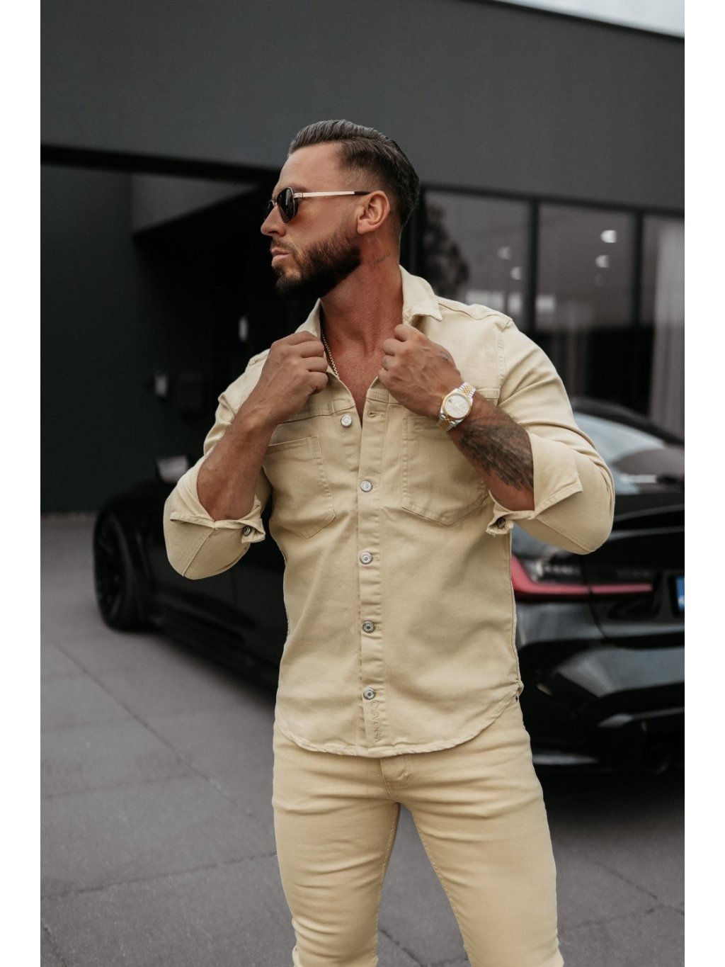 Pánska košeľa v ležérnom štýle, ktorá dokonale spája eleganciu s ľahkosťou. Vyrobená z vysoko kvalitného, mäkkého bavlneného materiálu s mierne opotrebovaným povrchom, ktorý dodáva kúsku osobitý charakter. Košeľa má klasický golier a dve náprsné vrecká so zapínaním na gombík. Spodná časť je zdobená decentným, reliéfnym logom OLAVOGA.