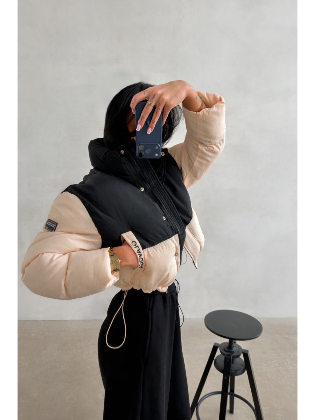 Táto krátka prešívaná bunda je kombináciou modernej pouličnej módy a funkčného pohodlia. Je vyrobená z ľahkej technickej látky, vďaka čomu je ideálna na chladnejšie dni a zároveň dodáva dynamický a športový vzhľad. Prešívaná konštrukcia so zvýšeným golierom pre ochranu pred vetrom. Trendový, znížené ramená a skrátená dĺžka, ktorá zvýrazňuje pás.