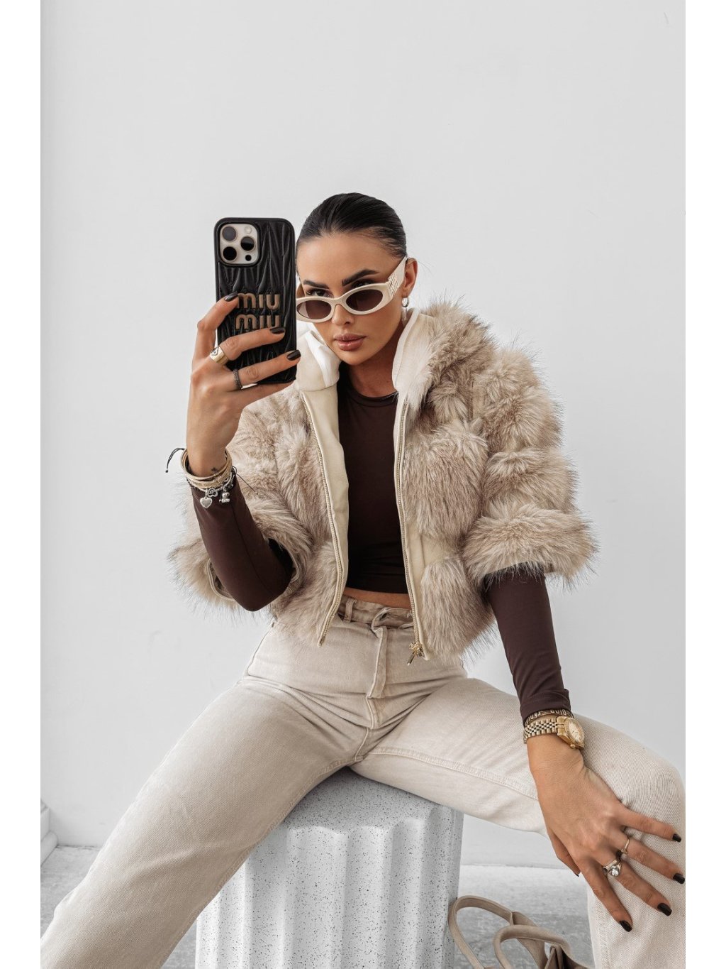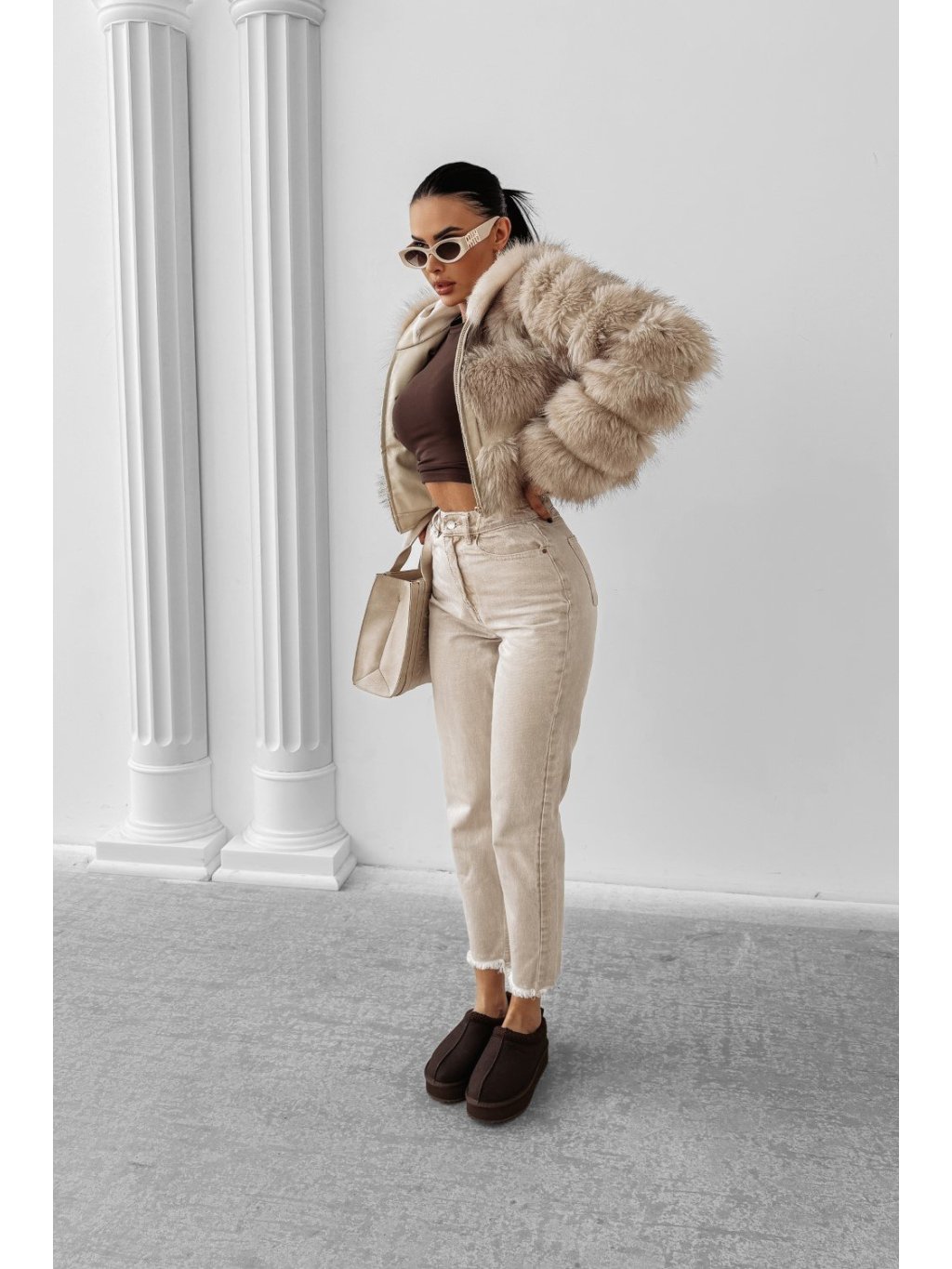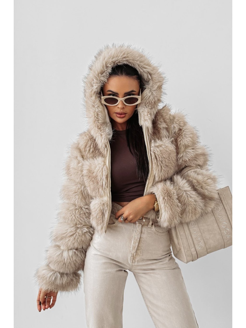 Divatos, rövid fazonú műszőrme kabát Vypasované változatban. Cipzárral záródik, oldalt praktikus zsebekkel. Mellkasán logós címkével díszítve, amely prémium hatást kelt. Ideális hidegebb napokra.