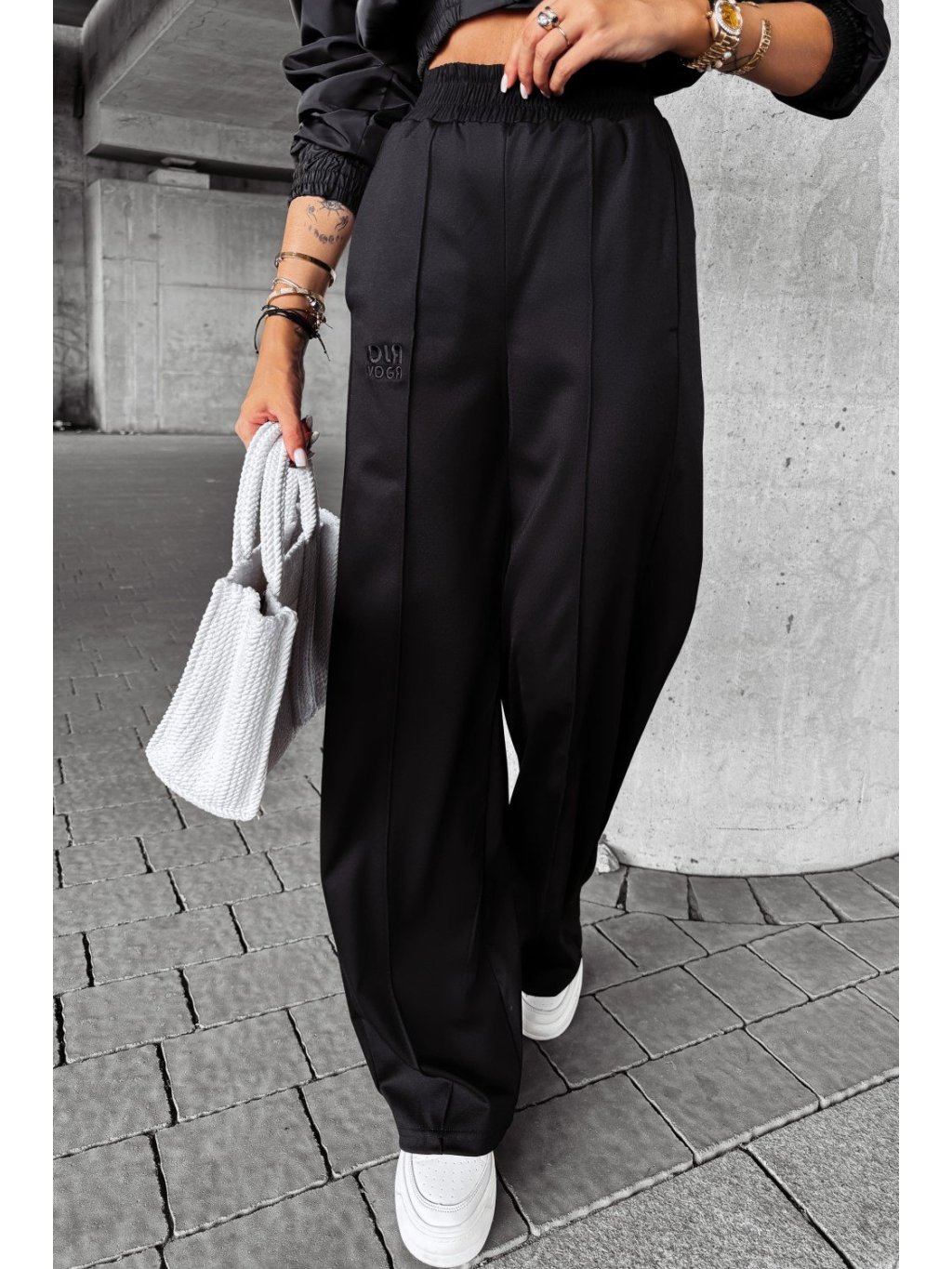 Hladké, elegantné nohavice s voľným a pohodlným strihom. S vysokým pásom, ktorý tvaruje siluetu. Na prednej strane má záhyb, ktorý dodáva eleganciu. Má bočné vrecká. Stonky sa rozširujú smerom nadol. Minimalistická čierna výšivka s logom OLAVOGA vpredu, so zaujímavým vzorom.