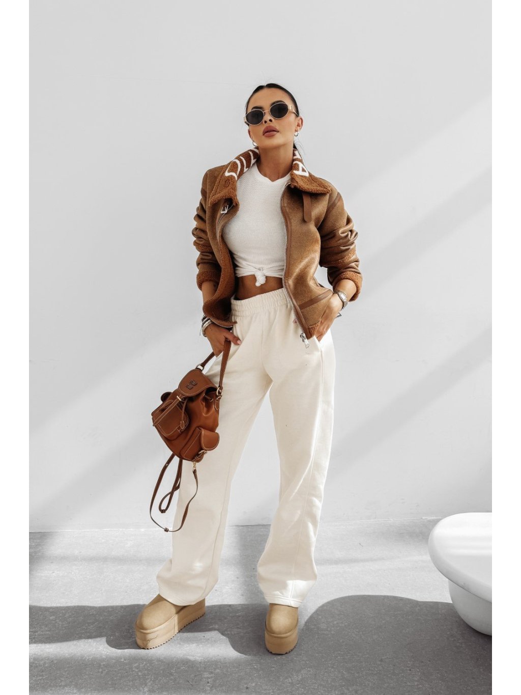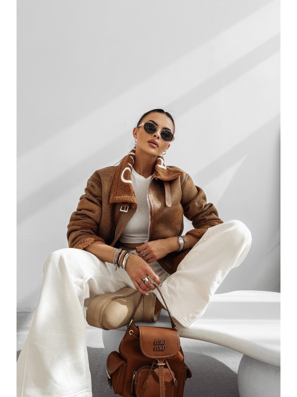 Kožená bunda vyrobená z prémiového materiálu s logom OLAVOGA na golieri.