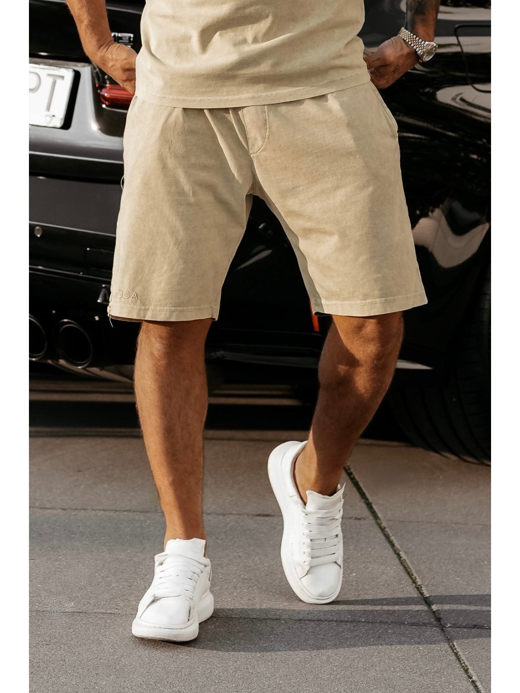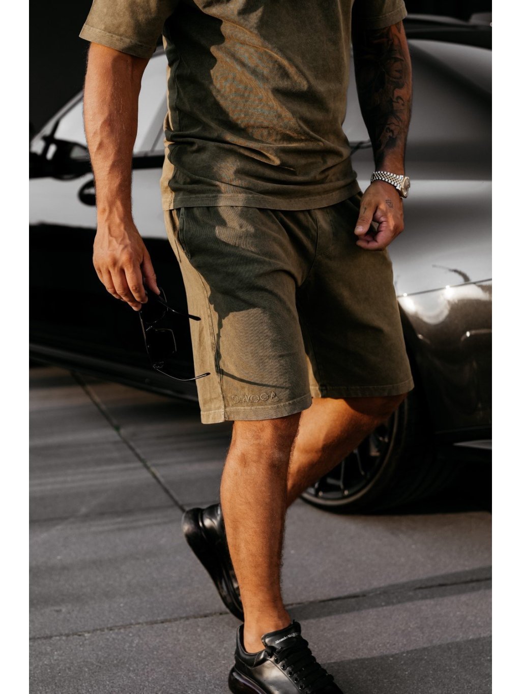 Model má výšku 185 cm a nosí veľkosť L. Voľné šortky vyrobené z vysoko kvalitnej, elastickej bavlny. Vrecká vpredu a vzadu. Elastický pás so sťahovacou šnúrkou. Predná časť je zdobená výšivkou loga OLAVOGA vo farbe výrobku.