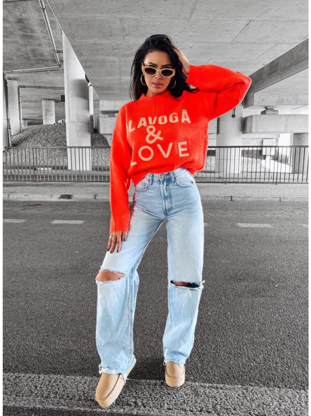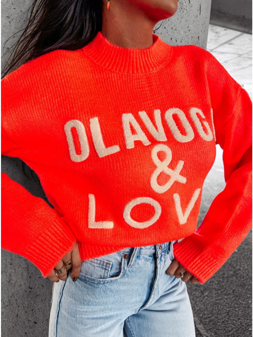 Tento jemne oversized pulóver je vyrobený z kvalitného úpletu a vpredu ho zdobí 3D výšivka loga OLAVOGA & LOVE. Rebrované švy na okrajoch zaisťujú pohodlie a elegantný vzhľad.