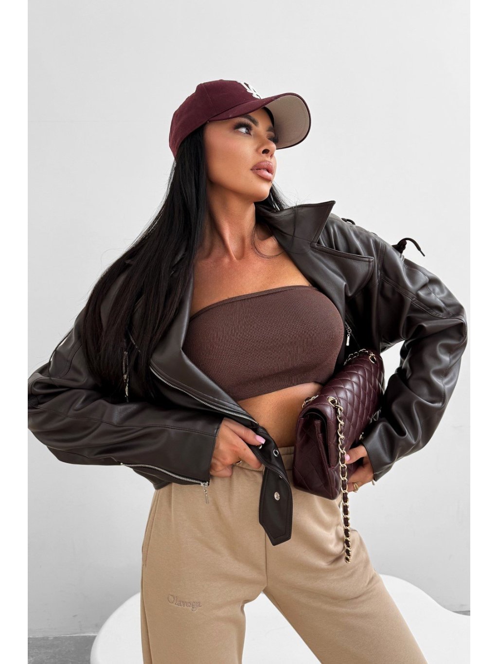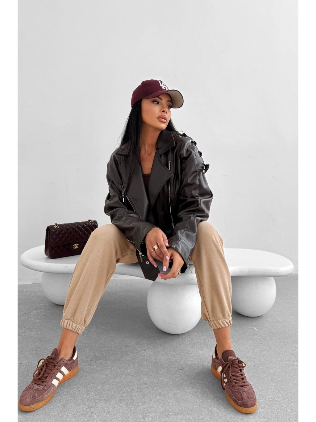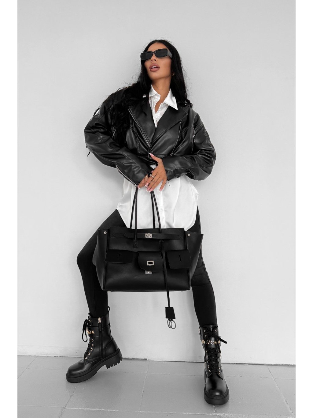 Kožená bunda s oversize strihom. Vyrobená z mäkkej ekokože, so zipsom a prednými vreckami. Na chrbte je vyrazené logo OLAVOGA, vďaka čomu je výnimočným detailom. Športová aj moderná zároveň.