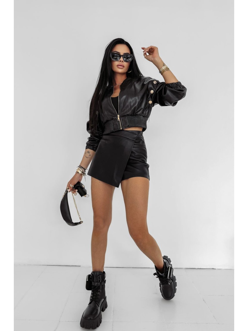 Bunda/vesta z eko kože so zipsom. Stredne dlhý strih. S bočnými vreckami. S kovovým logom na prednej strane.