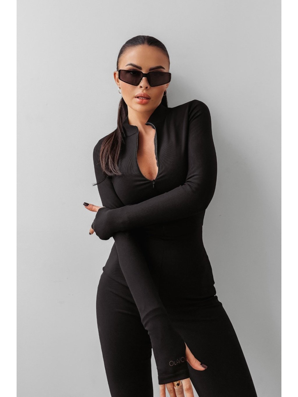 Priliehavý overal s dlhým rukávom, ktorý dokonale kopíruje postavu. Elastický materiál s rolákom.