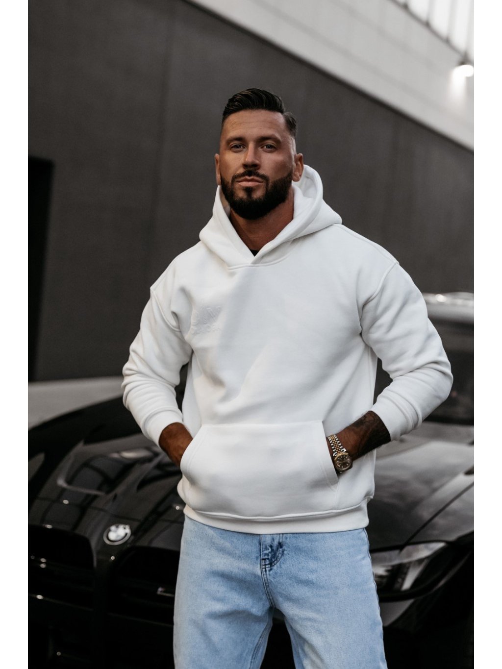 Mikina s kapucňou klasického strihu. Vyrobená z mäkkej bavlny s elastickými lemami. Kontrastná potlač loga OLAVOGA na prednej strane.
