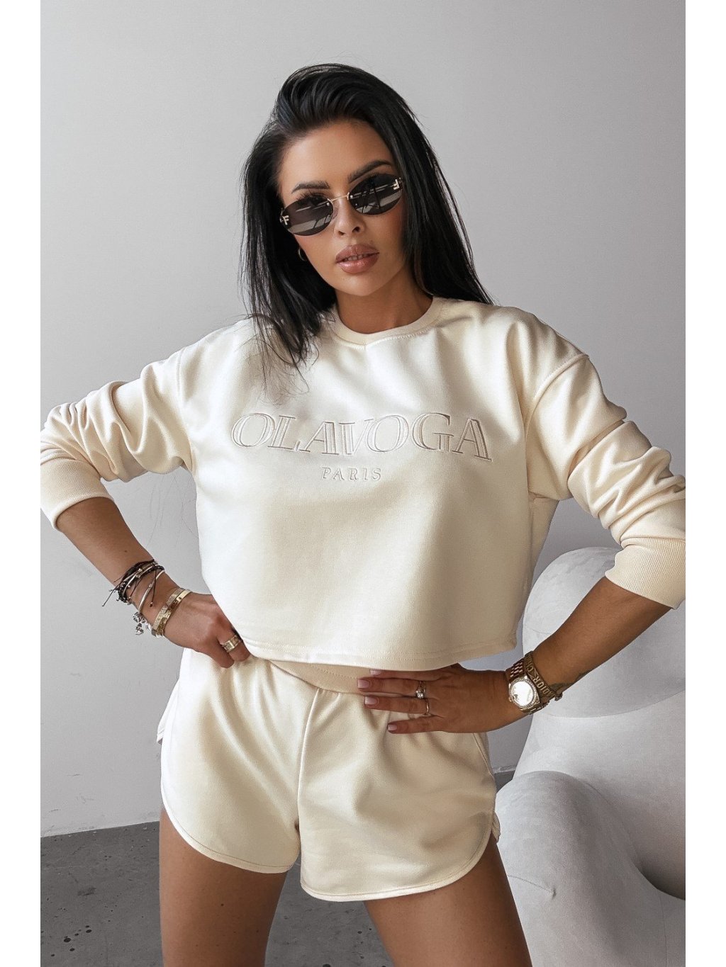Pohodlná a zároveň štýlová ležérna súprava, vyrobená z vysoko kvalitnej BAVLNY - ideálna na každodenné nosenie, cestovanie alebo voľnočasové aktivity. Horná časť: mikina bez kapucne. Zdobená logom OLAVOGA na prednej strane.